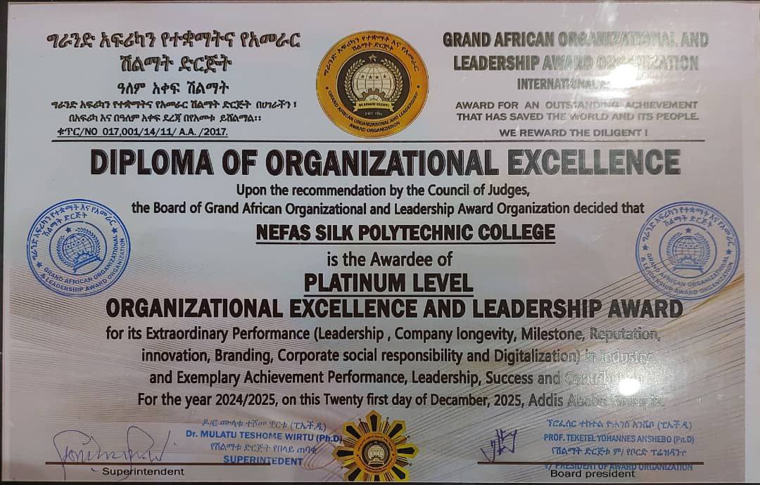 ንፋስ ስልክ ፖሊ ቴክኒክ ኮሌጅ የ20ኛው ግራንድ አፍሪካ የአመራርና የተቋማት ሽልማት የፕላቲኒየም ደረጃ ተሻለሚ ሆነ።